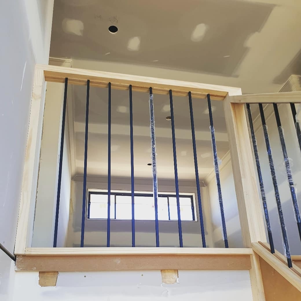 It was stairs week! We chose mitred handrails with matte black square balusters. We really wanted to keep it simple and minimalist so the mitred handrails was a must. It really gives it a sleek look with clean lines.